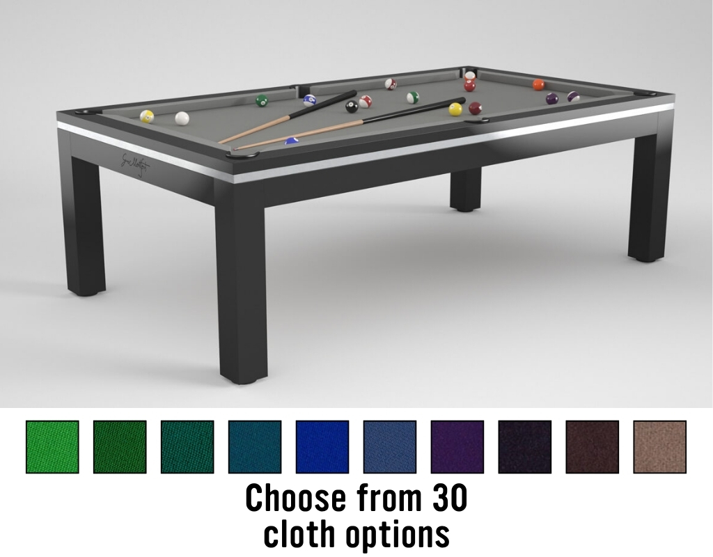 It uses a sectional slate bed on all sizes, ensuring a rock-solid, stable and precise playing surface. The table is also fitted with high-grade tournament quality Simonis cloth as standard and is available in a wide range of finishes, including 10-layer sprayed gloss paintwork for exceptional shine and durability.