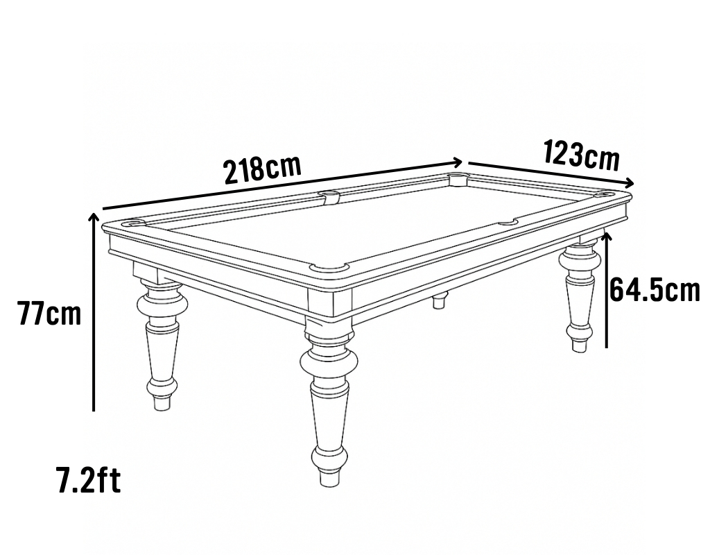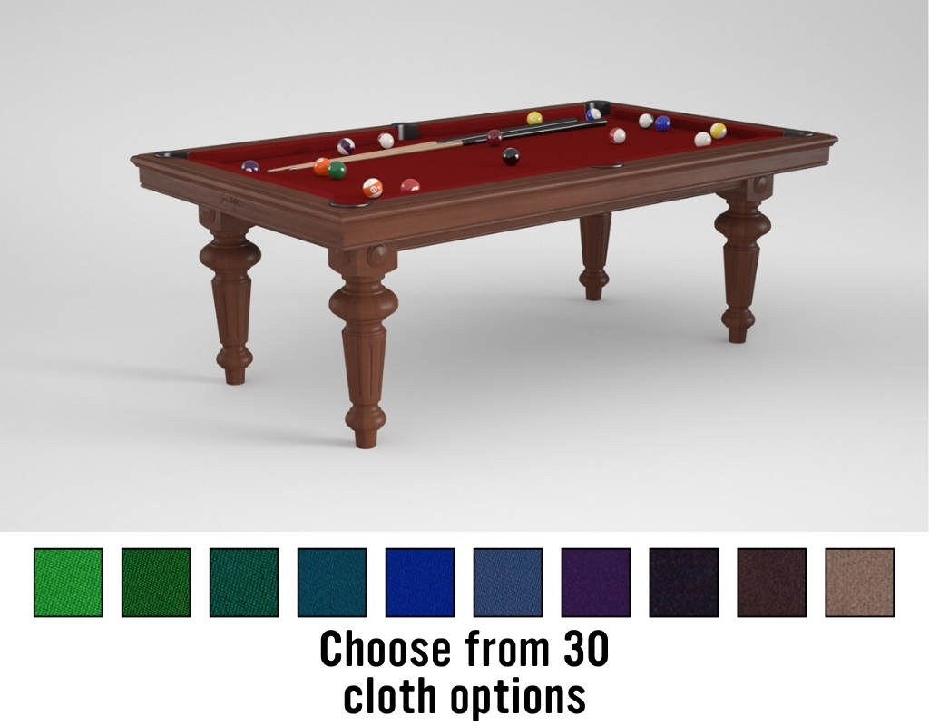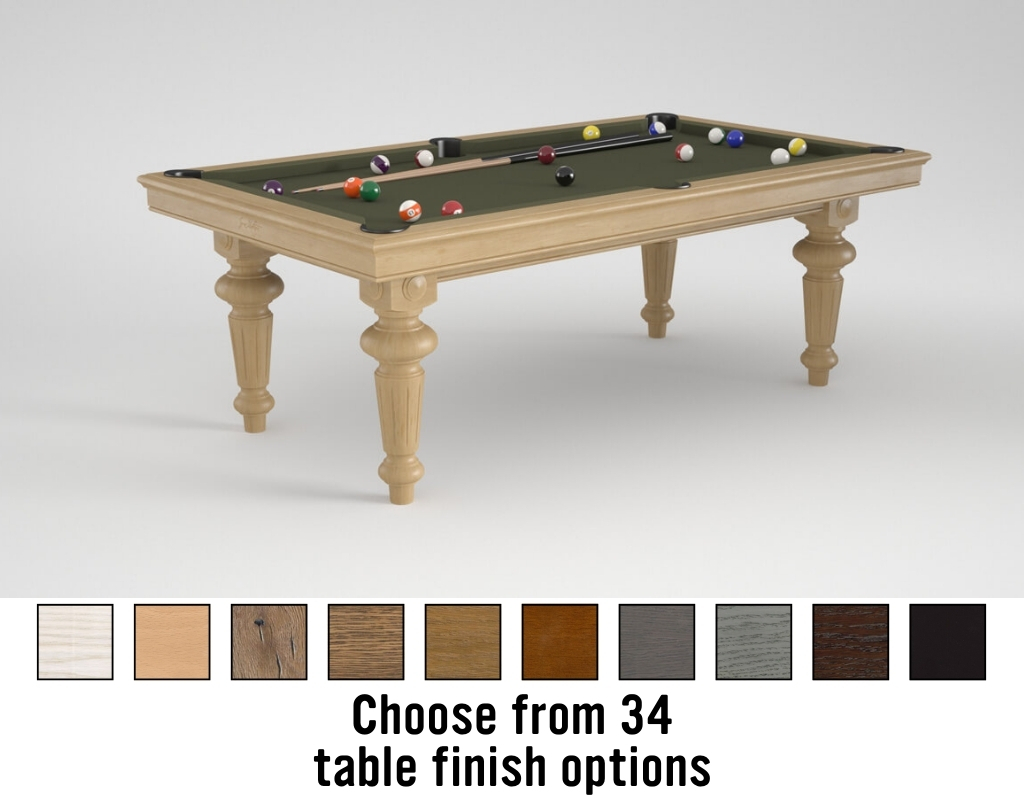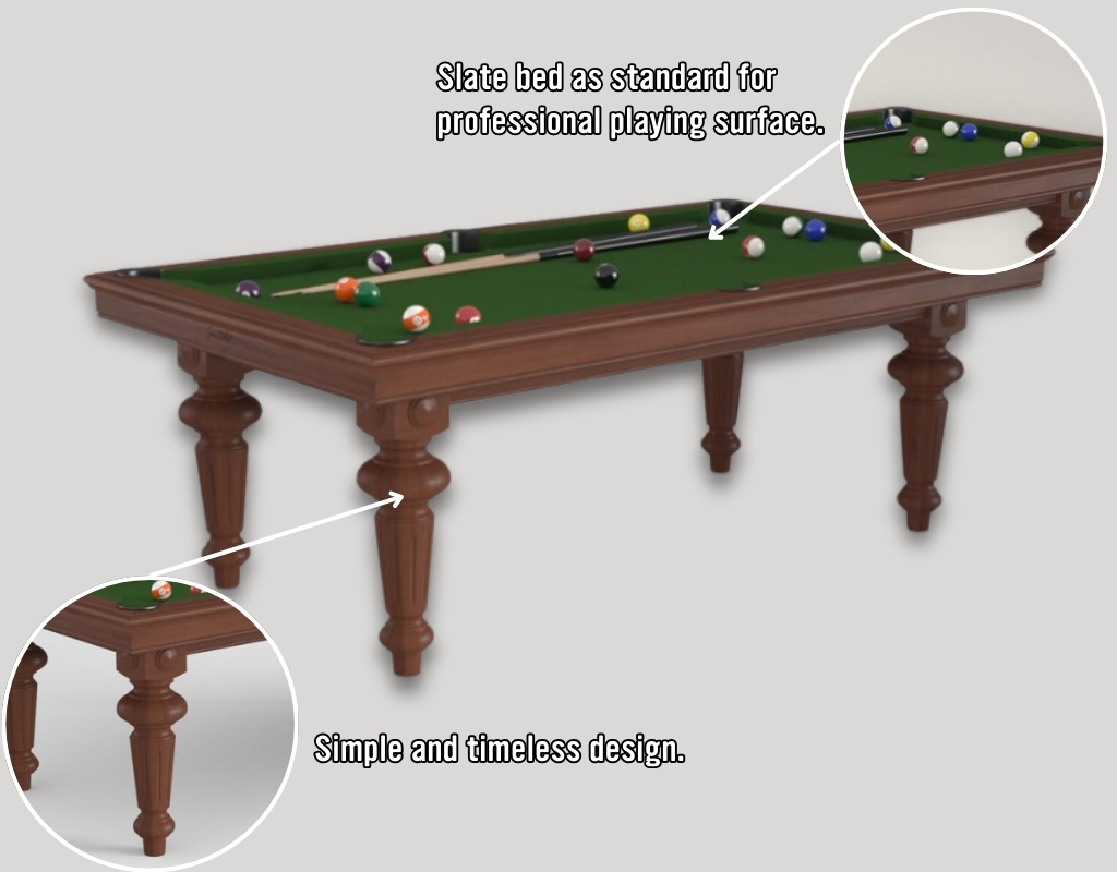 The Ile de France is part of the Montfort Tradition Range, offering timeless aesthetics with modern construction. This table combines elegant design with serious gameplay credentials, making it a superb centrepiece for any home. It uses a slate bed as standard, with a single-piece slate on the 7.2ft model and a sectional three-piece slate on the 8ft and 8.5ft options.