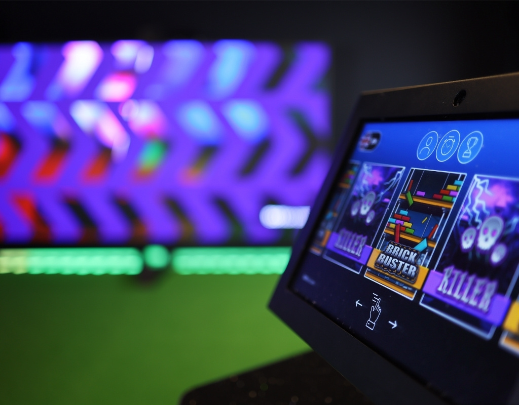 Everything is controlled through a touchscreen user interface positioned beside the green. Paired with vibrant animations and integrated audio, the system delivers a fully immersive putting experience.
