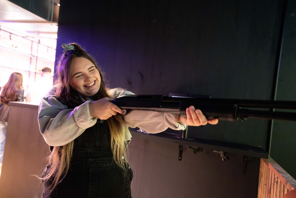 Includes two premium shotguns with a synthetic stock, full metal body, and solid barrel, delivering a realistic weight, balance, and feel. Designed for authenticity and durability, these shotguns are fully customizable to match your venue’s unique style and requirements.
